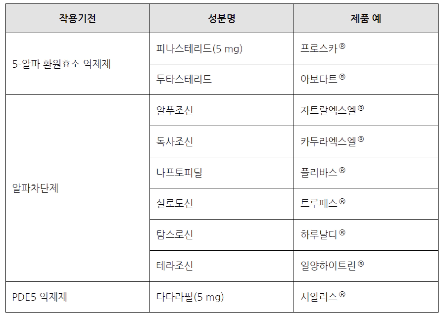 알파 차단제(alpha-blocker) 및 5-α 환원효소억제제(alpha-reductase inhibitor) 같은 약물 요법이 최근에 도입되어 전립선 비대증 치료에 많은 도움을 주고 있습니다. 이러한 발전으로 약물 요법만으로도 긍정적인 결과를 얻을 수 있습니다.