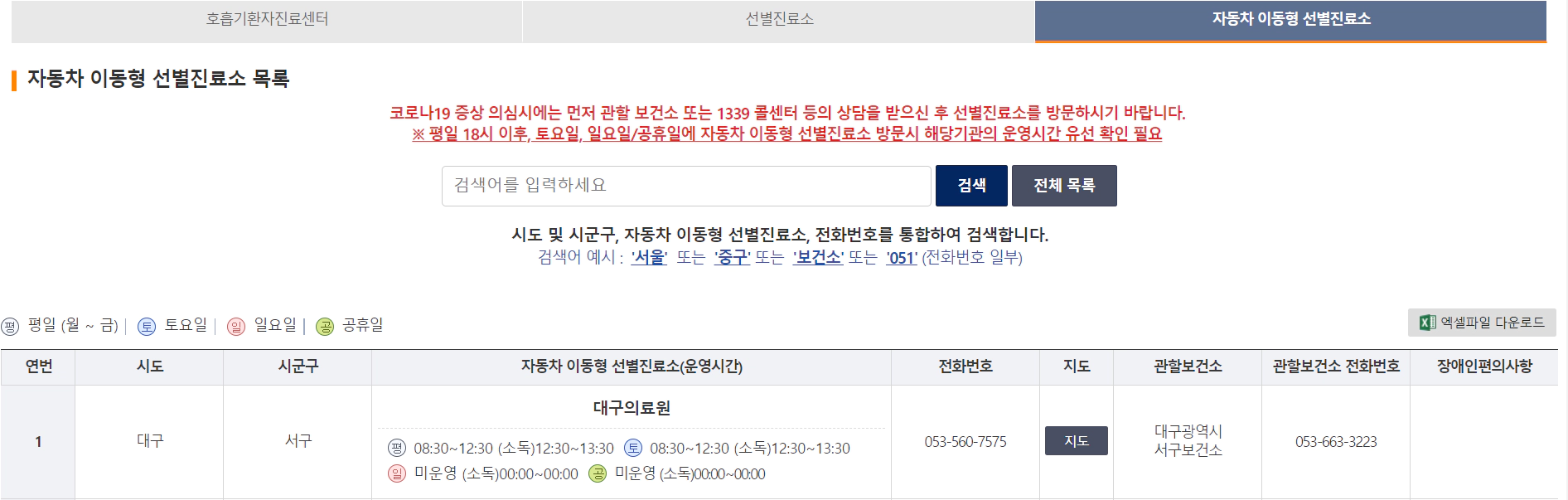 1. 코로나 검사 병원 호흡기환자진료센터